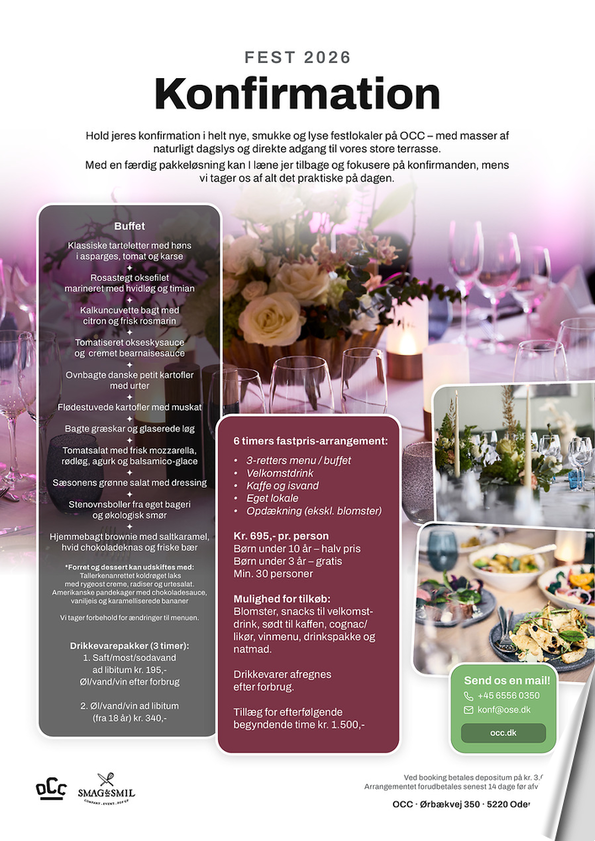 Hold jeres kon昀椀rmation i helt nye, smukke og lyse festlokaler på OCC – med masser af